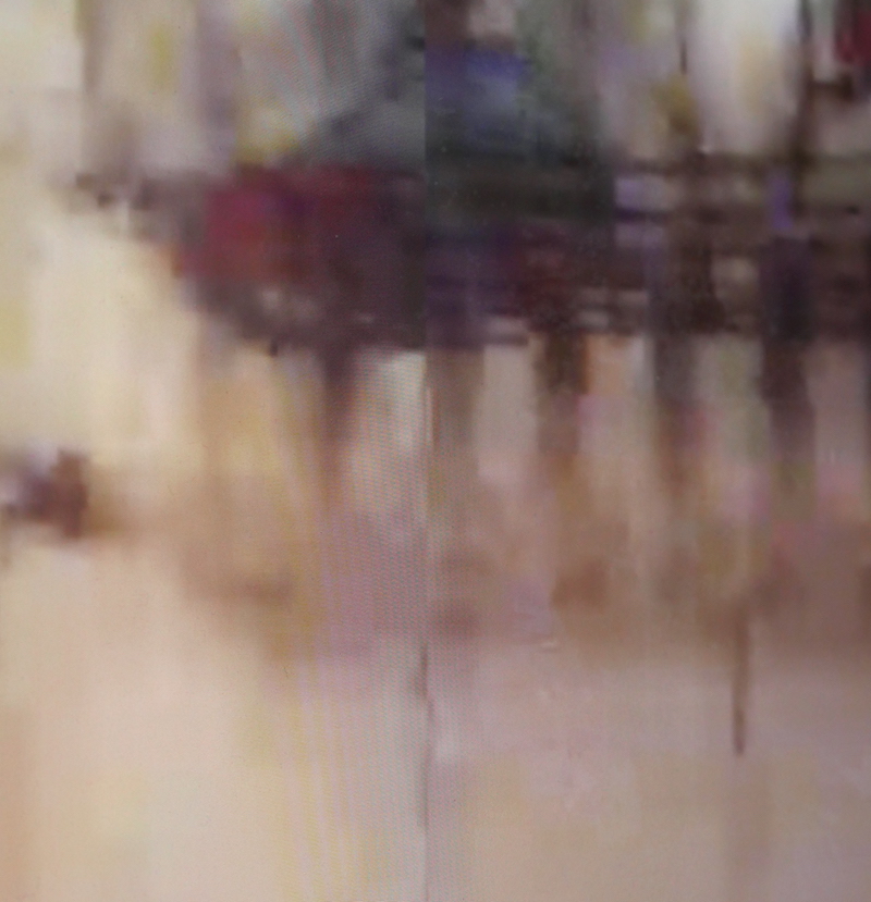 Ein schrägwinkliges Foto von einem Bildschirm, der ein Bildschirmfoto von einem schlecht übertragenen Skypevideo zeigt.